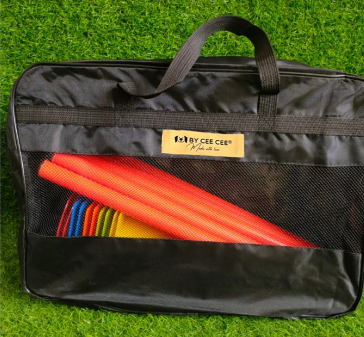 De Agility set is voor je huisdier dus fantastisch, maar er is ook aan het baasje gedacht. De set komt namelijk met een opbergtas. Op deze manier heb jij niet voortdurend allerlei pionnen en stokken in je huis staan, maar kan je het juist in een tas netjes wegleggen.