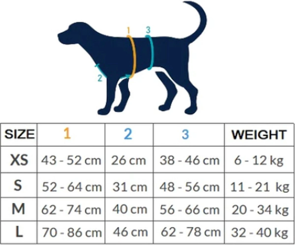 Dit tuigje is een S, geschikt voor een hond met een borstomvang tussen de 52 en 64 cm. Een S is bijvoorbeeld geschikt voor een beagle, grote shiba inu, cocker spaniel of podenco andaluz.