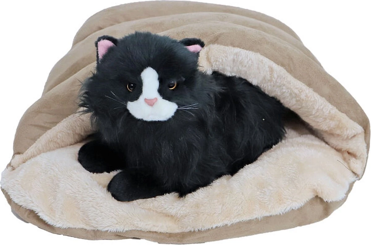 Boon slaapzak 45 cm bruin/beige is een heerlijke slaapzak in trendy kleur met pluche voor jouw kat, hond, konijn of knaagdier. Deze leuke slaapzak is de ideale ligplek voor jouw huisdier. De meeste huisdieren vinden het heerlijk om ergens in weg te kruipen en beschermd te liggen. Of ligt jouw huisdier misschien liever lekker op een zachte ondergrond? Deze slaapzak is ideaal voor beide! Heeft een heerlijke pluche binnen- en buitenkant. Jouw huisdier kan op de slaapzak gaan liggen, maar door de ruimte tussen de twee delen kan hij of zij er ook in gaan liggen. Zo ligt je huisdier lekker warm en beschermd of kan hij ervoor kiezen de slaapzak als zachte ondergrond te gebruiken. Door de trendy kleur past deze slaapzak bovendien in elk interieur.