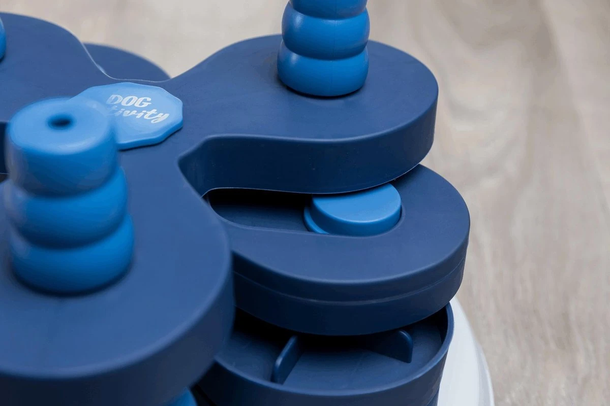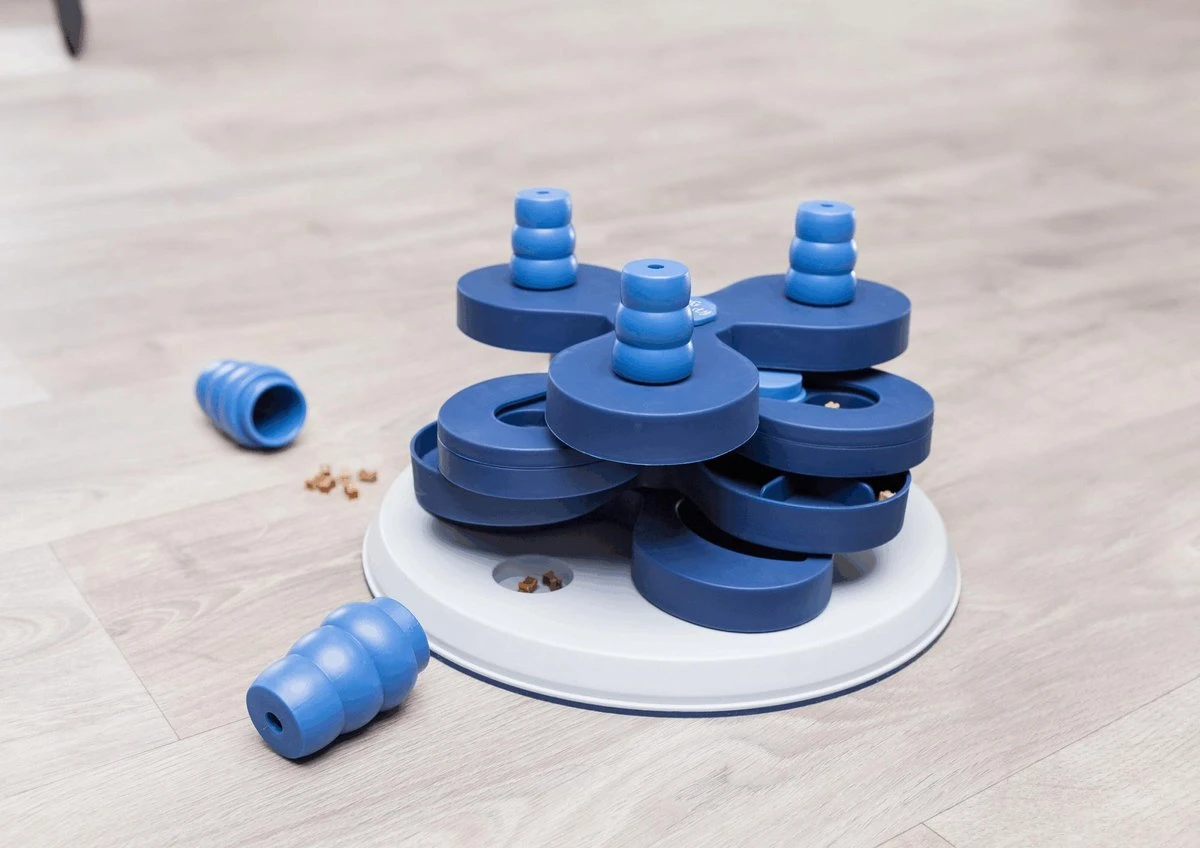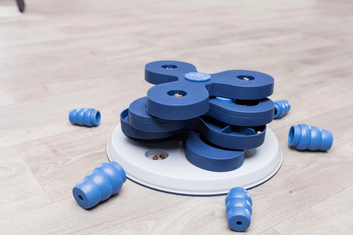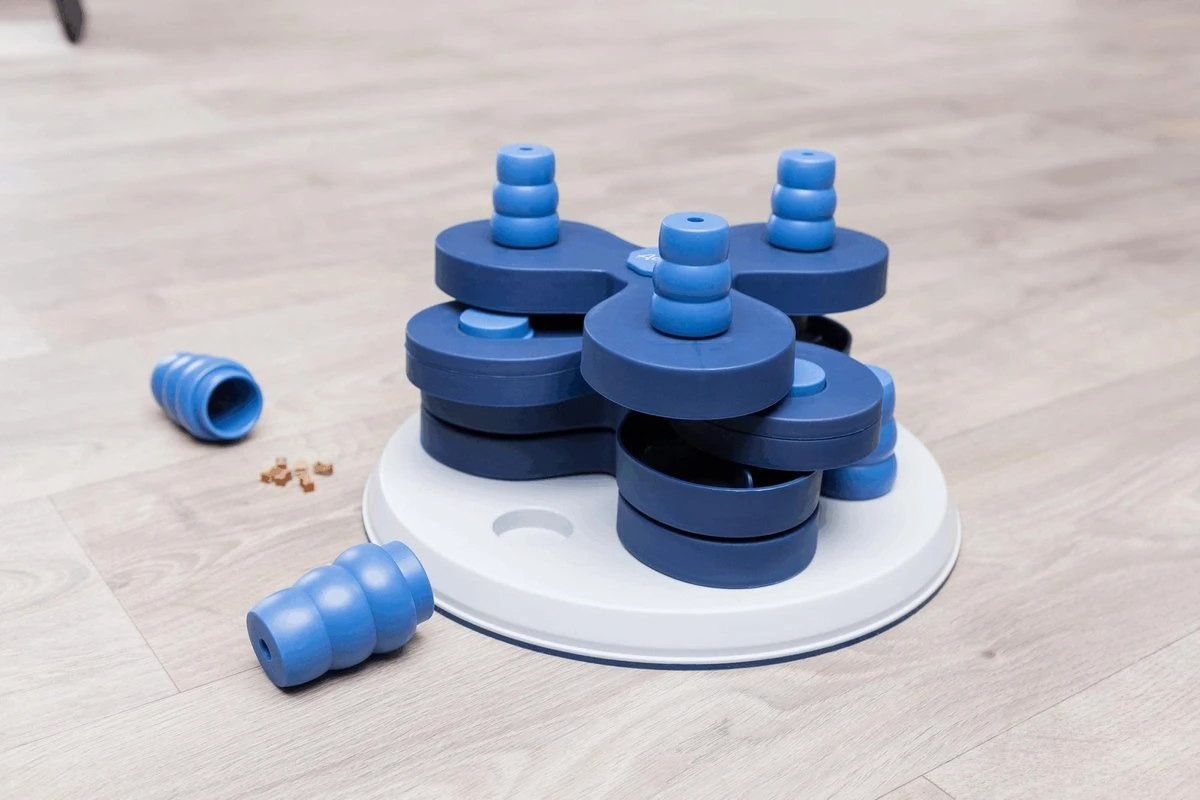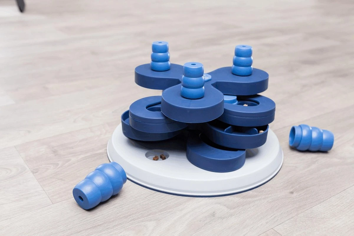 Het Trixie Dog Activity Intelligentiespel Flower Tower van 30 x 30 x 13 cm is een uitdagend intelligentiespel voor de gevorderde hond. Het spel is voorzien van kommetjes en schuifdeksels op verschillende niveaus, alsook zes kegels die omgeduwd kunnen worden om er eten onder te vinden. Door verschillende openingstechnieken komt de hond bij zijn beloning. Dit biedt mentale uitdaging en gaat verveling tegen. Door de rubberen ring is het speelgoed slipvast en kan jouw hond ongestoord op zoek naar zijn beloning! Het spel komt bovendien met een handleiding met tips en handigheidjes voor een optimale training.