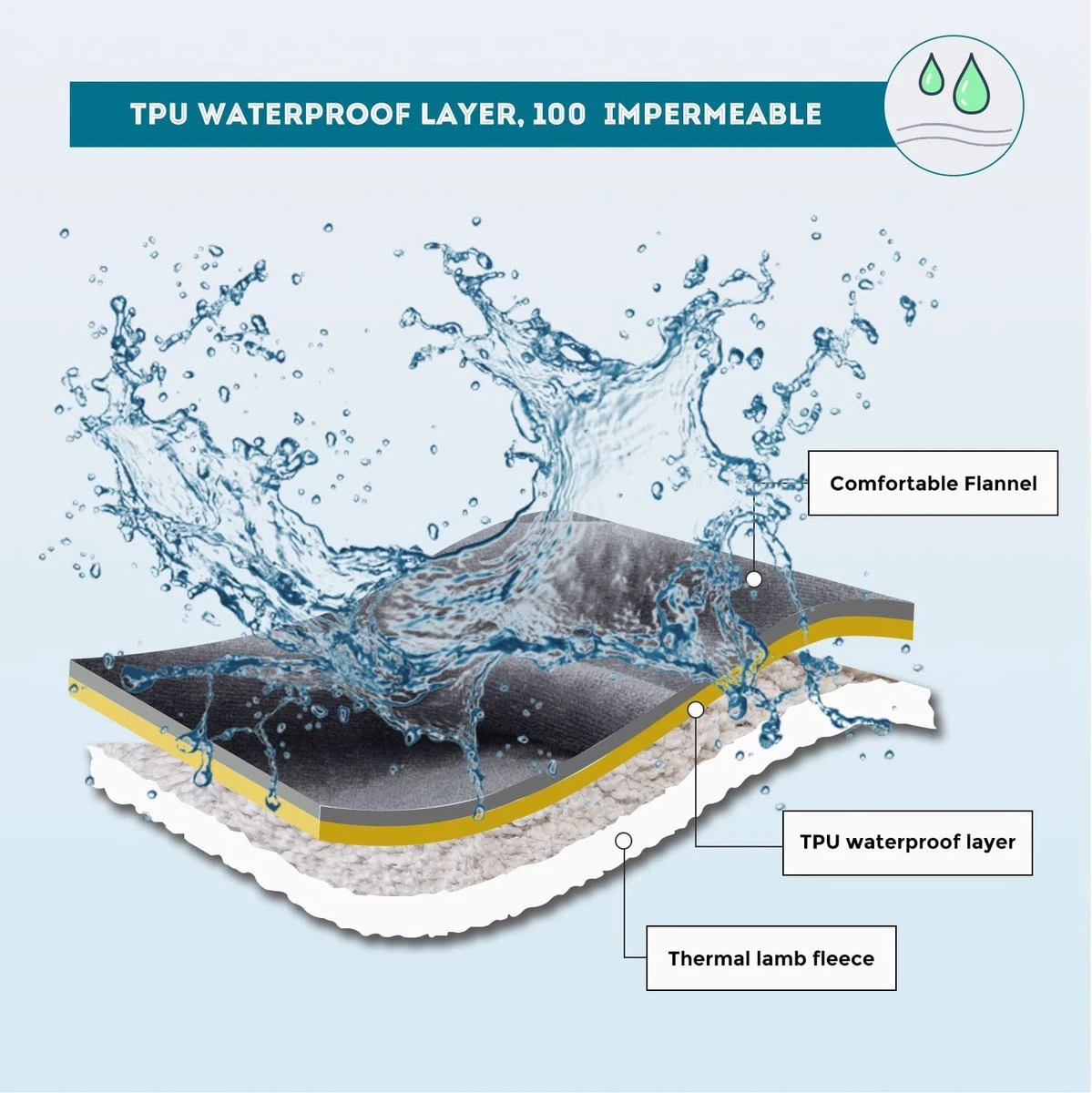Warme huisdierdeken: deze omkeerbare hondendeken is gemaakt van flanel en lamsfleece. De impregnering komt ertussenin, hij bestaat uit 100% waterdicht weefsel in één stuk, maar het oppervlak van de vezel zelf is niet waterdicht, het belangrijkste doel van deze waterdichte knuffeldeken voor katten is het lekken van vloeistoffen door de deken te voorkomen.