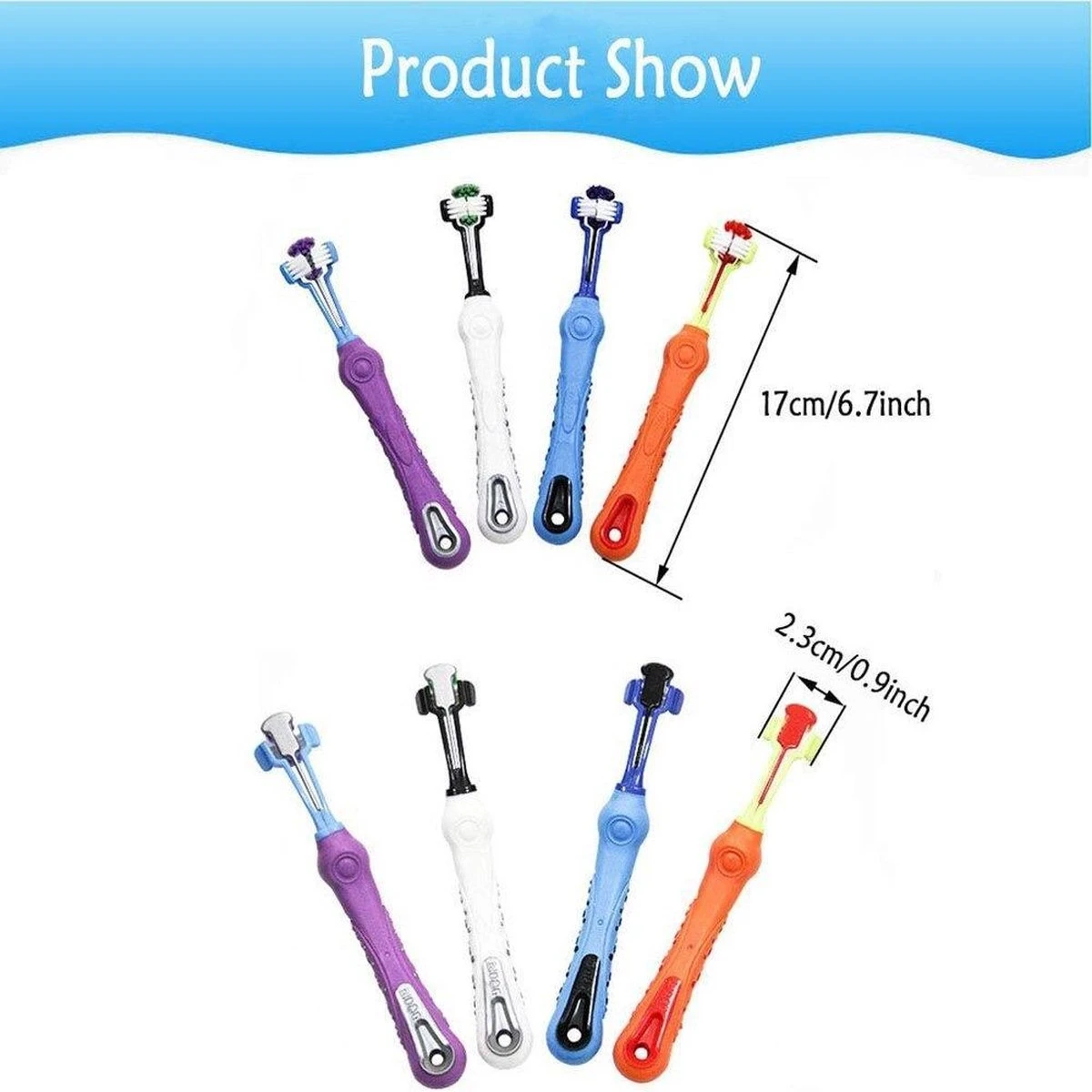 3-zijdig Tandenborstel. Maakt het borstelen van tanden van uw huisdier gemakkelijker dan ooit. Voeg uw huisdier favoriete honden tandpasta toe en borstel al het viezigheid weg!