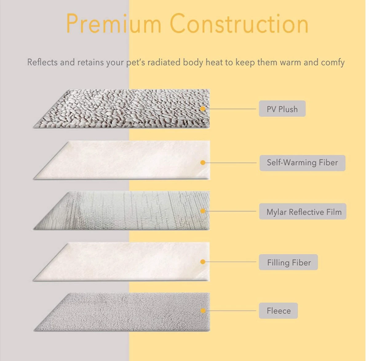 Thermodeken Bestaat uit drie lagen isolerende en warmteabsorberende vezels (uitvoerig getest) die je huisdier lekker warm houden, ook op koude dagen. Ideaal voor katten, katten, konijnen, pups, kleine honden en oudere huisdieren met gewrichtsaandoeningen zoals artritis.