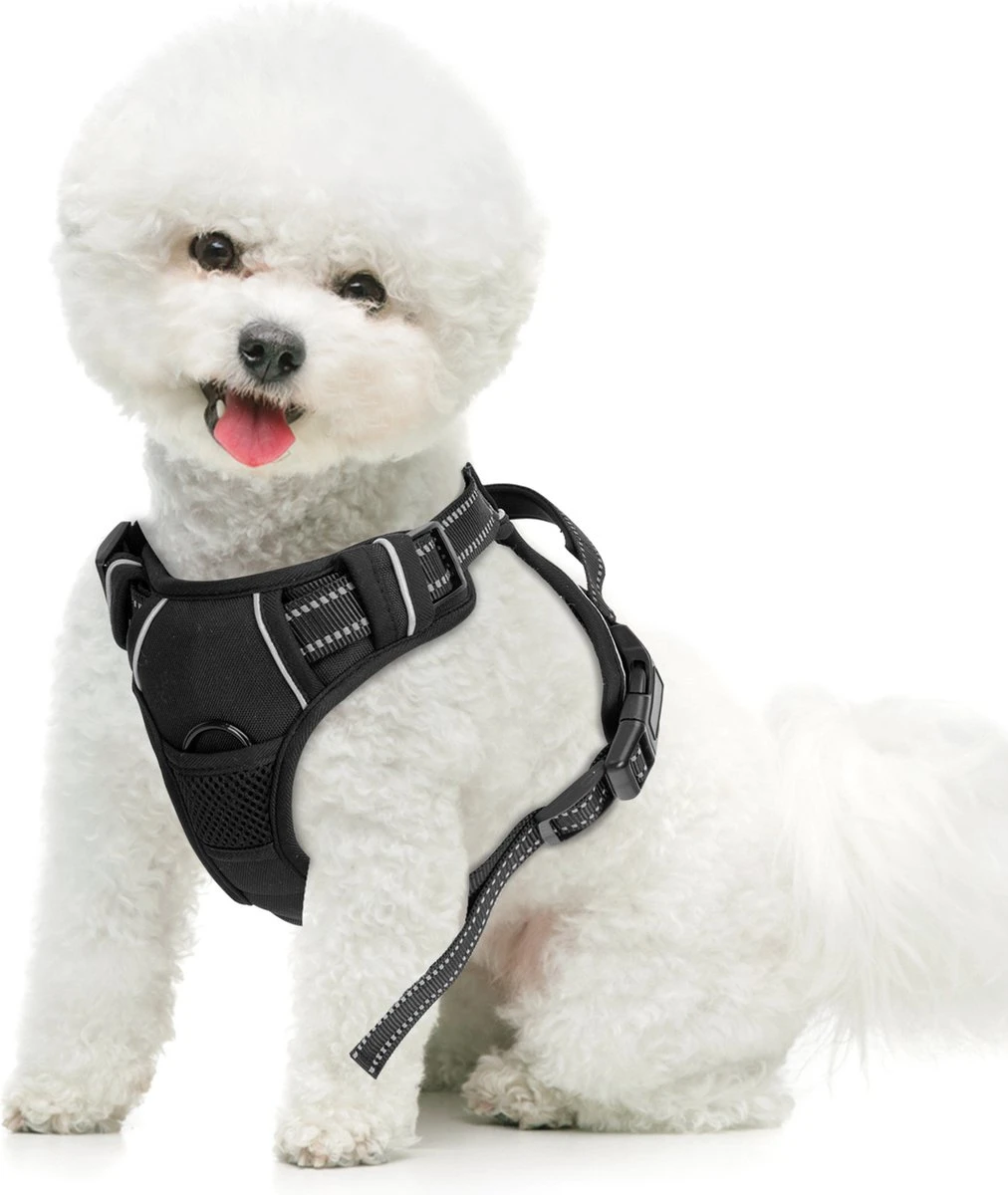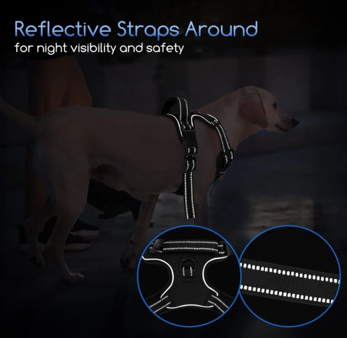 Samen met reflecterende banden rondom, is deze harnas zeer reflecterend en houdt uw huisdier zichtbaar en veilig voor automobilisten en joggers in het donker.