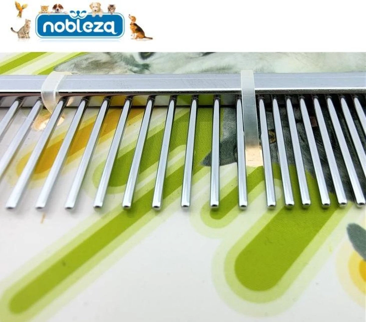 Goede kwaliteit kam voor honden en katten met twee verschillende afstanden tussen de pinnen. De toppen van de pinnen zijn afgerond waardoor je de huid van de hond niet kan beschadigen. Doordat deze kam antistatisch is vergemakkelijkt dat het kammen van een vacht.