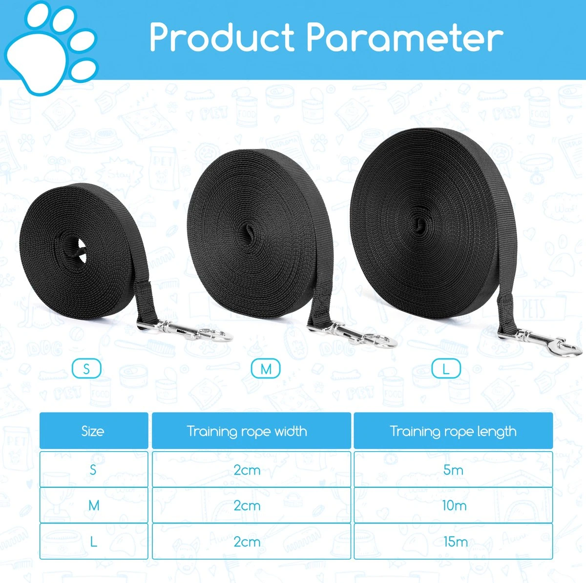 - De lange trainingslijn heeft een musketonhaak met een goede sluiting.