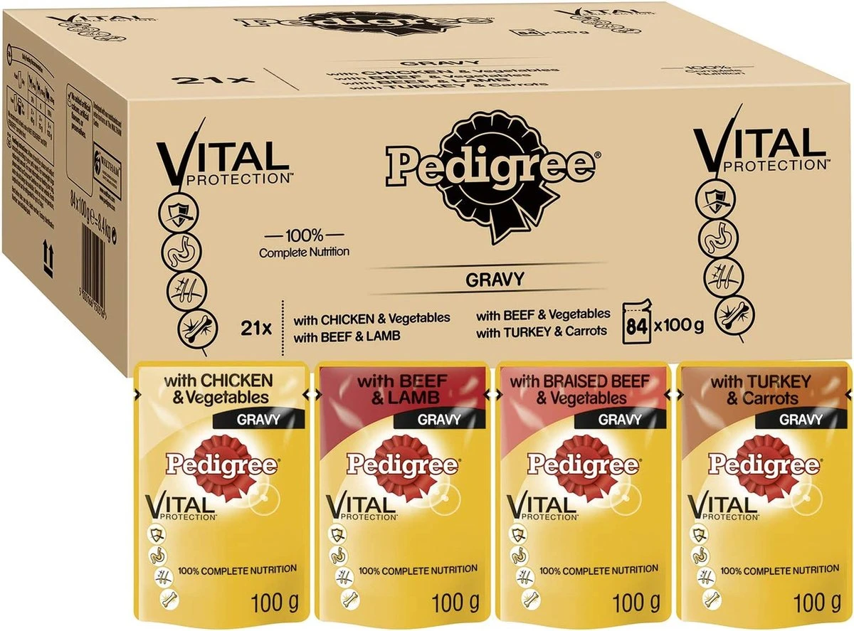 Pedigree hondenbuidels zijn ontwikkeld met de hulp van dierenartsen en voedingsdeskundigen van het Waltham Pet Nutrition Centre en bevatten alle essentiële voedingsstoffen ter ondersteuning van een optimale spijsvertering, een gezonde huid en vacht, een sterk natuurlijk afweersysteem en gezonde botten.