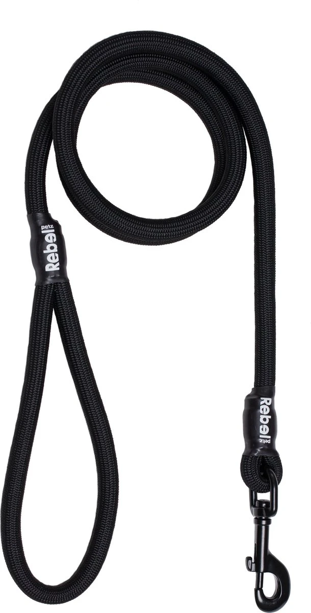 De sterke hondenlijnen van Rebel Petz zijn gemaakt van een dubbel gevlochten touw met een draaibare musketonhaak. Deze musketonhaak past zich aan de bewegingen van jouw hond aan.