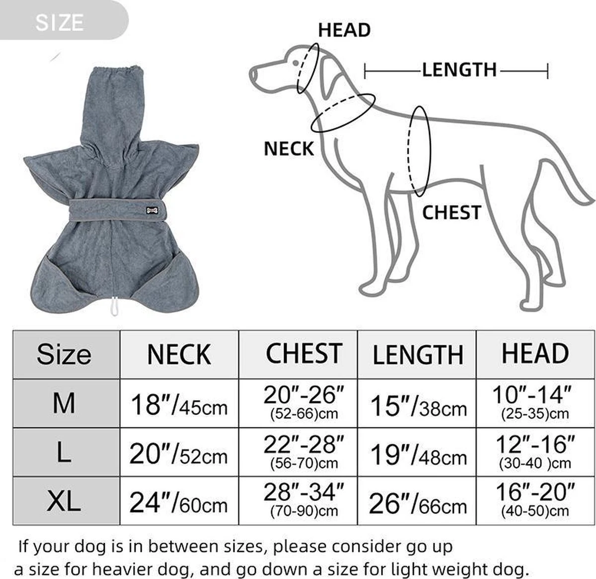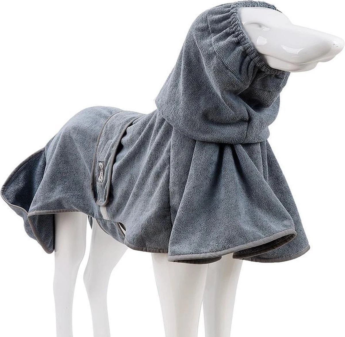 De hondenbadjas is voorzien van een extra brede halsopening en twee verstelbare gespen die zorgen voor een ideaal draagcomfort. Het lange en brede stuk stof bij de buik zorgt voor de juiste pasvorm voor uw hond. De badjas is in diverse maten beschikbaar.