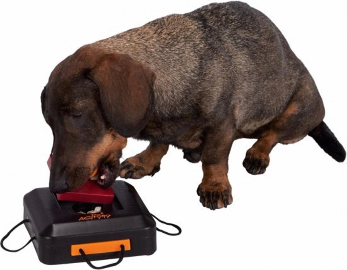 Trixie Dogtoy Dog Activity Strategy Game Gamble Box – Piepend Speelgoed – 15cm X 15cm X 9cm – Zwart/rood/oranje