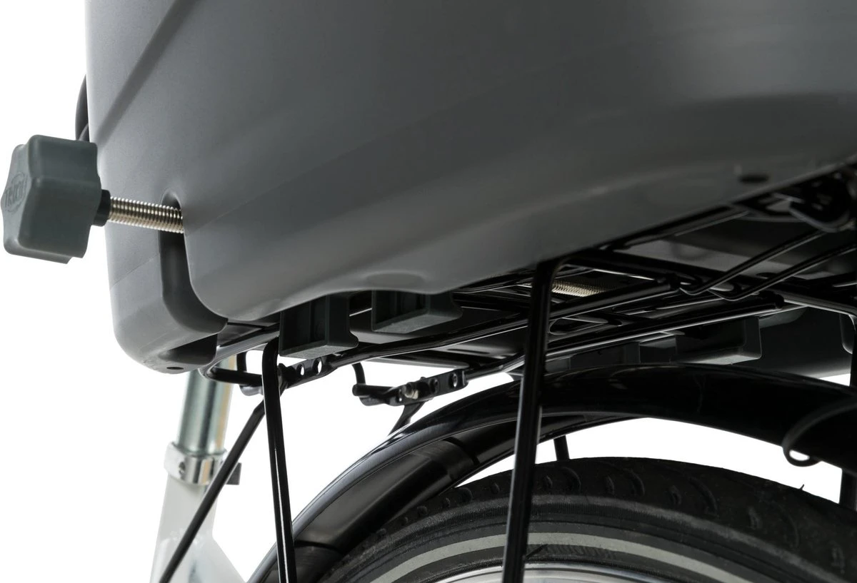 – Voor op de bagagedrager, geschikt voor alle bagagedragers tussen de 6 en 16 centimeter breed