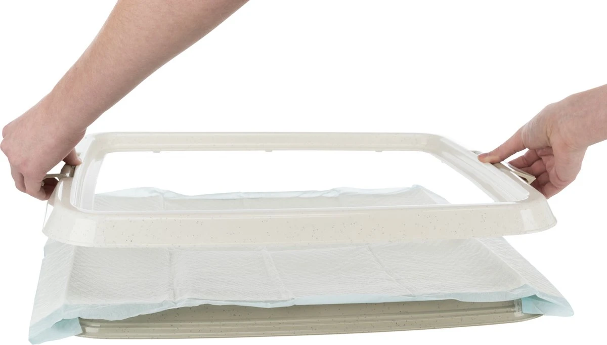 Het Trixie Puppytoilet Puppy Loo 49 x 41 cm is een hondentoilet speciaal voor puppypads, uit een slipvast klem-frame gemaakt van kunststof, ideaal voor de zindelijkheidstraining. Met deze handige Puppy Loo van Trixie wordt de zindelijkheidstraining van jouw hond een fluitje van een cent! Dit toilet is een klem-frame dat speciaal gemaakt is om de puppy-mat in te klemmen. De mat blijft zo altijd mooi op zijn plek, ook als hij al flink doorweekt is. Het frame zelf is slipvast door rubberen voetjes en eenvoudig te reinigen omdat het gemaakt is van kunststof.